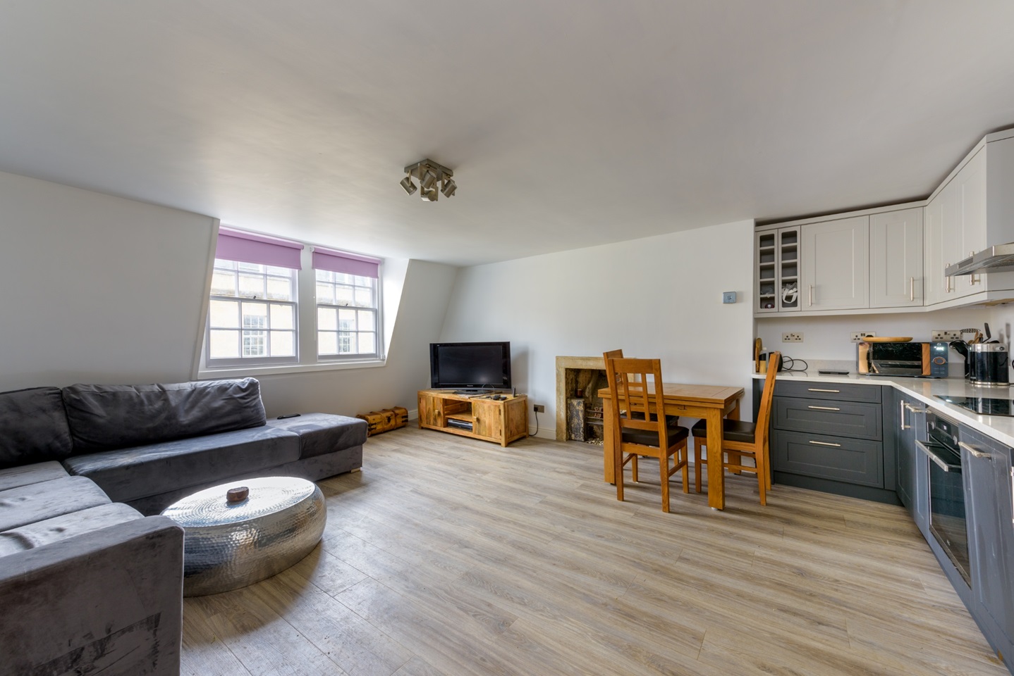 This spacious top floor two bedroom apartment is located in heart of Bath the city centre. It is to be sold with no onward the front of the property is an open plan dining area with kitchen and sitting wonderful room with beautiful sash window and fireplace. In the end of the apartment is the newly fitted bathroom, fully tiled complete with bath with shower over, shower screen and ladder radiator